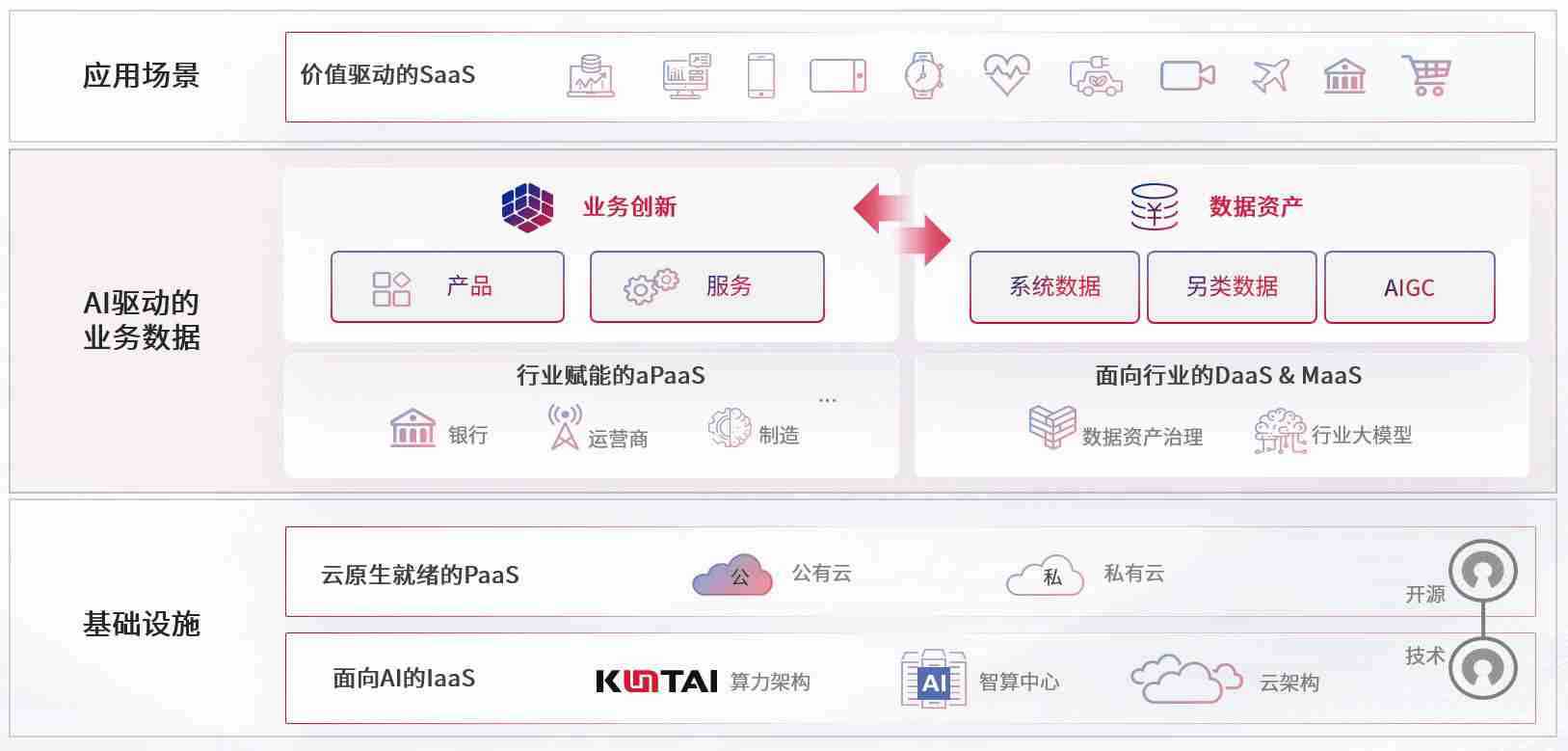数字时代,,,围绕企业数字化转型的关键要素,,,,boyu数码开创性的提出数云融合战略和技术体系框架,,着力在云原生、、、数字原生、、AI原生和信创产业上架构产品和服务能力,,,,为处在不同数字化转型阶段的快消零售、、、汽车、、、金融、、医疗、、、、政企、、、教育、、、运营商等行业客户提供泛在的敏捷IT能力和融合的数据驱动能力,,,构建跨界融合创新的数字业务场景和新业务模式,,,助力企业级客户建立面向未来的核心能力和竞争优势,,全面推动社会的数字化、、、智能化转型升级。。。。