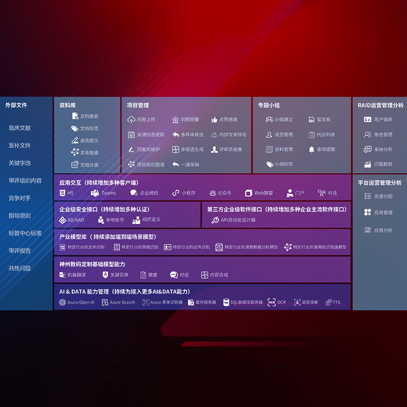 医疗器械产品上市前,,,,要熟悉严格与繁复评审标准,,,,整理分析监管机构指导文件中的海量信息。。。。企业急需一个智能化解决方案,,,提升知识管理效率,,提高评审通过率,,,以提升其市场竞争力。。